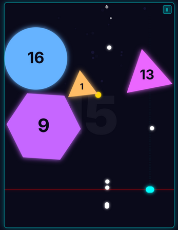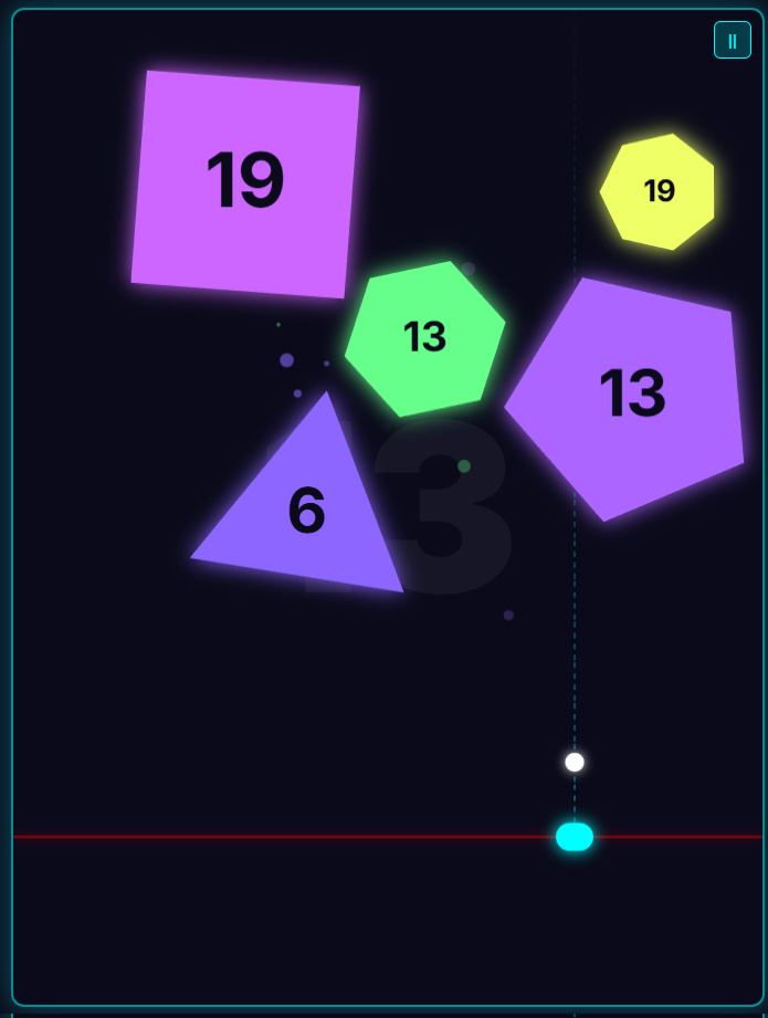Gameplay: Control a ship that auto-fires as polygonal enemies descend. Bounce your bullets off your ship and the walls to destroy them! If an enemy crosses the red line, you lose.